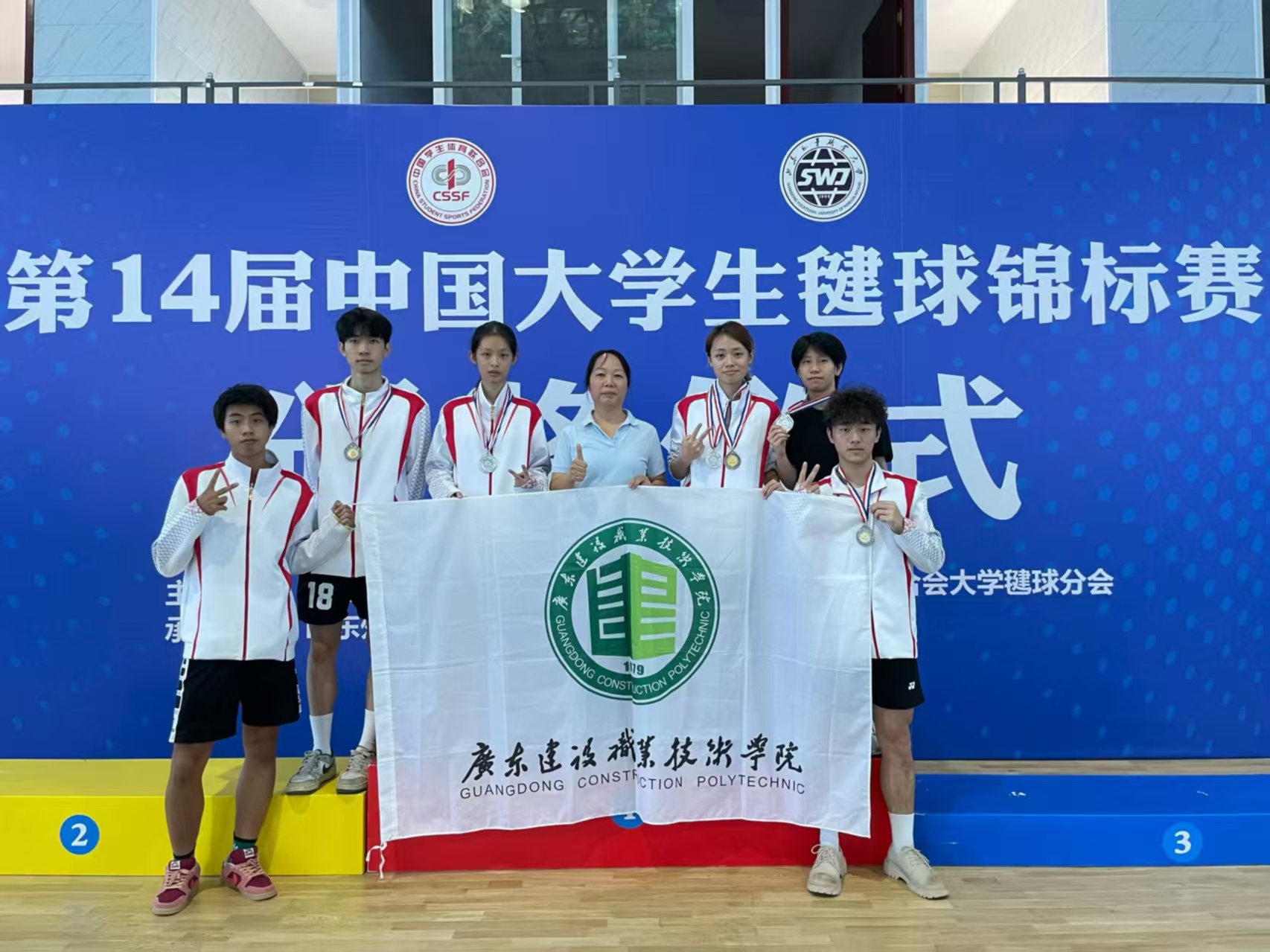 广东建设职业技术学院对此次国家级赛事予以高度重视,组建了实力强劲的参赛队伍 —— 由赖锦松担任领队、田国苹担任教练,率领 3 名男队员与 3 名女队员组成的 6 人团队出征。在为期8天的激烈角逐中,我校运动员奋勇拼搏,最终斩获2银2铜及总分乙组第五名的优异成绩。