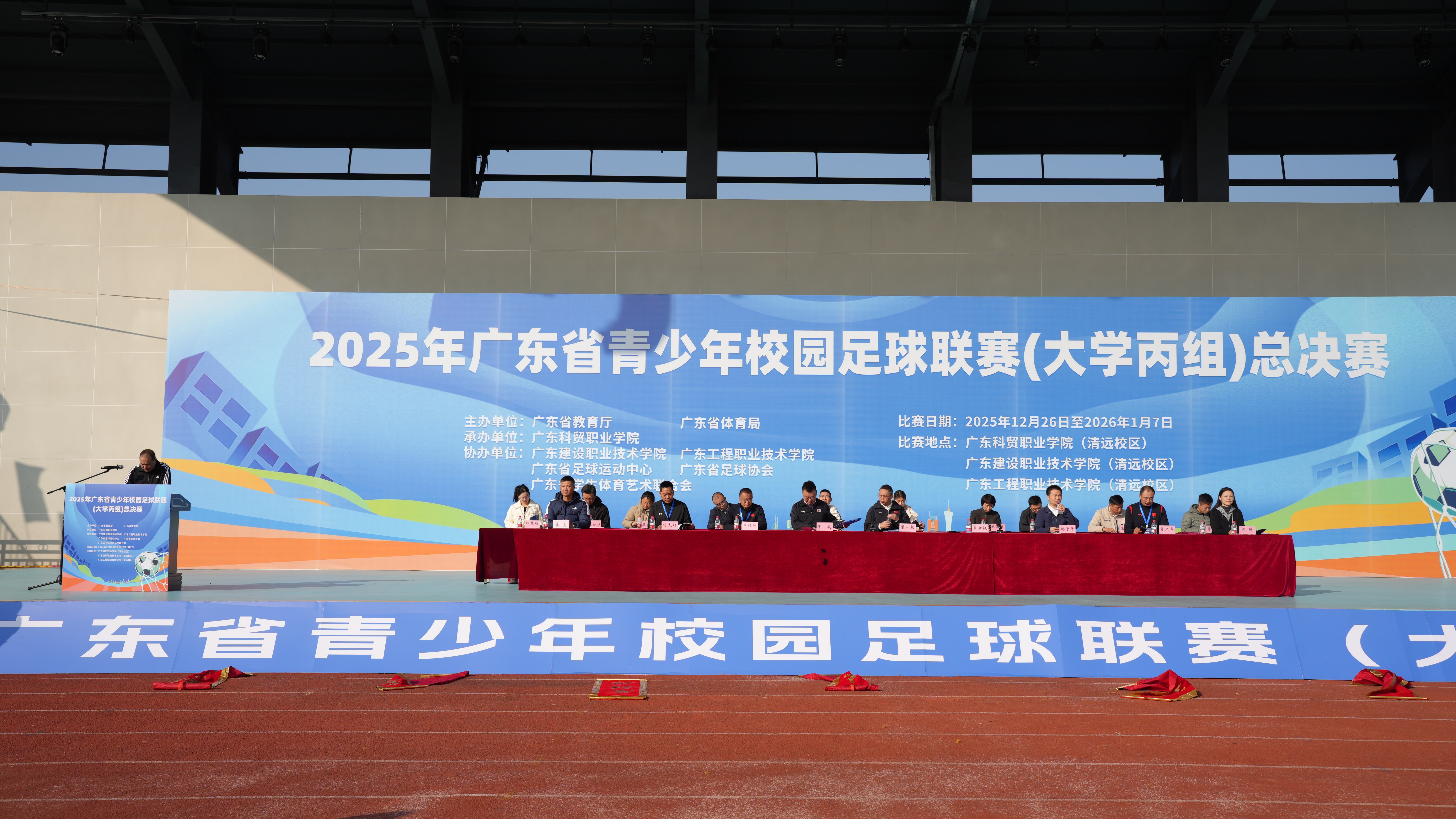 2025年12月27日,由广东省教育厅与广东省体育局联合主办、广东科贸职业学院承办,广东建设职业技术学院、广东工程职业技术学院、广东省足球运动中心、广东省足球协会及广东省学生体育艺术联合会共同协办的2025年广东省青少年校园足球联赛(大学丙组)总决赛,于广东科贸职业学院正式开幕。