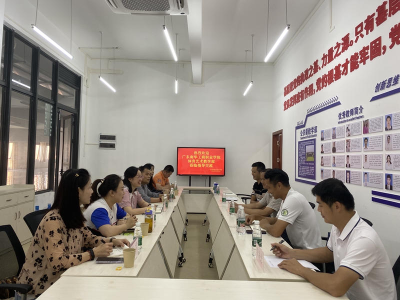 座谈会上,赖锦松主任对我校公共课教学部总体概况、体育课程、校内外竞赛、学生体质和体育社团进行了详细介绍。广东南华工商职业学院体育艺术教学部对我校运动队近期参加广东省大学生各单项锦标赛和省职教城“三大球”取得的成绩表示祝贺。双方就党建引领、人才培养、制度建设、阳光长跑、美育课程进行了深入的交流和热烈的研讨。